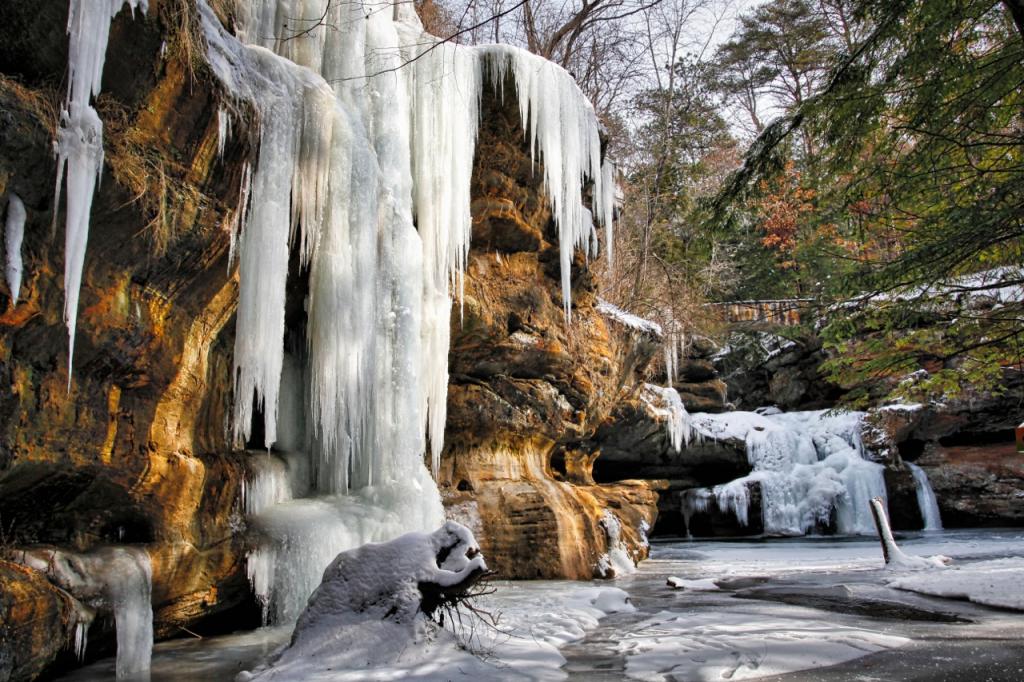 It’s no surprise that the Buckeye State is home to one of the region’s most popular outdoor attractions, Hocking Hills. It’s well worth your time to explore the Hocking Hills State Parks in any season, but winter brings some truly special things to experience. Wintertime is a truly magical time in the region and provides an especially nice time to relax by the fire while enjoying the views or to put on your hiking boots and go for an adventure. The snow-covered trails, frozen waterfalls, enormous icicles, and snow covered trees are just some of the things that make winters in Hocking Hills one of a kind. It just goes to show that the when the weather turns colder, the fun here does not end.
